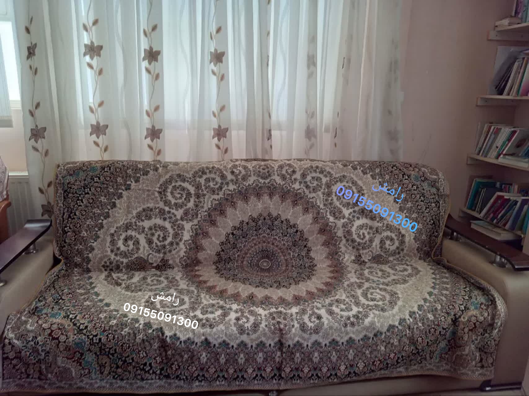 روفرشی ۲ رو (یک رو کرم و یک رو سرمه ای) کد ۰۸ جنس غیر مخمل طرح ابریشم سایز ۳ و ۶ و ۹ و ۱۲ متری